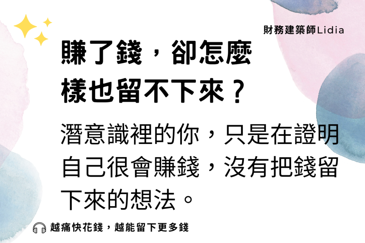 十多年後,我透過「療癒」慢慢的解開,之後,錢居然就存得起來了。